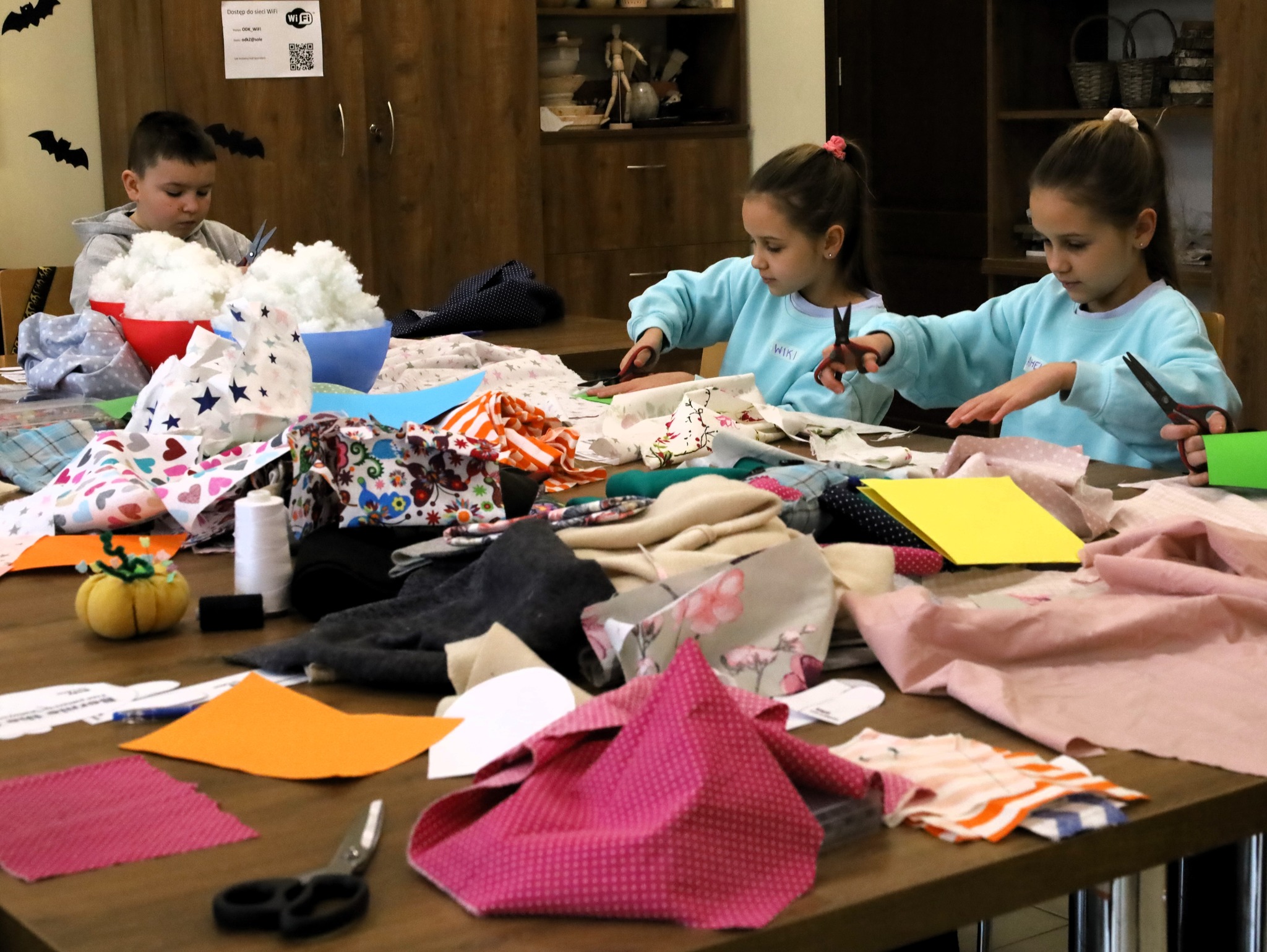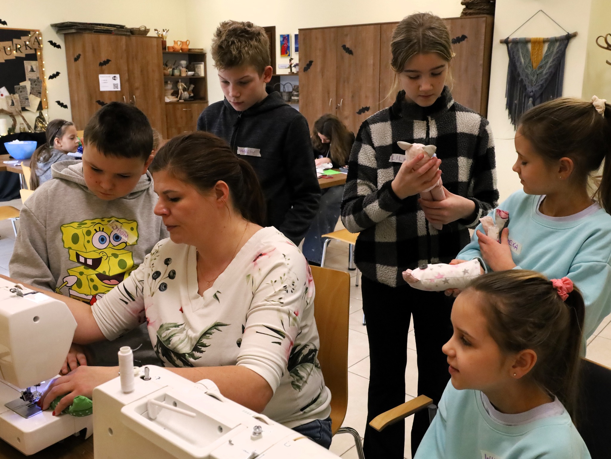 Drugie spotkanie przeniosło nas do świata rękodzieła. Uzbrojeni w materiał, igłę, nitkę, a także maszynę do szycia, stworzyliśmy wyjątkowych, miękkich towarzyszy – kolorowe kotki. Każdy z nich był niepowtarzalny, pełen charakteru i dziecięcej wyobraźni. To były zajęcia pełne skupienia, cierpliwości i ogromnej satysfakcji z własnoręcznie wykonanej pracy.