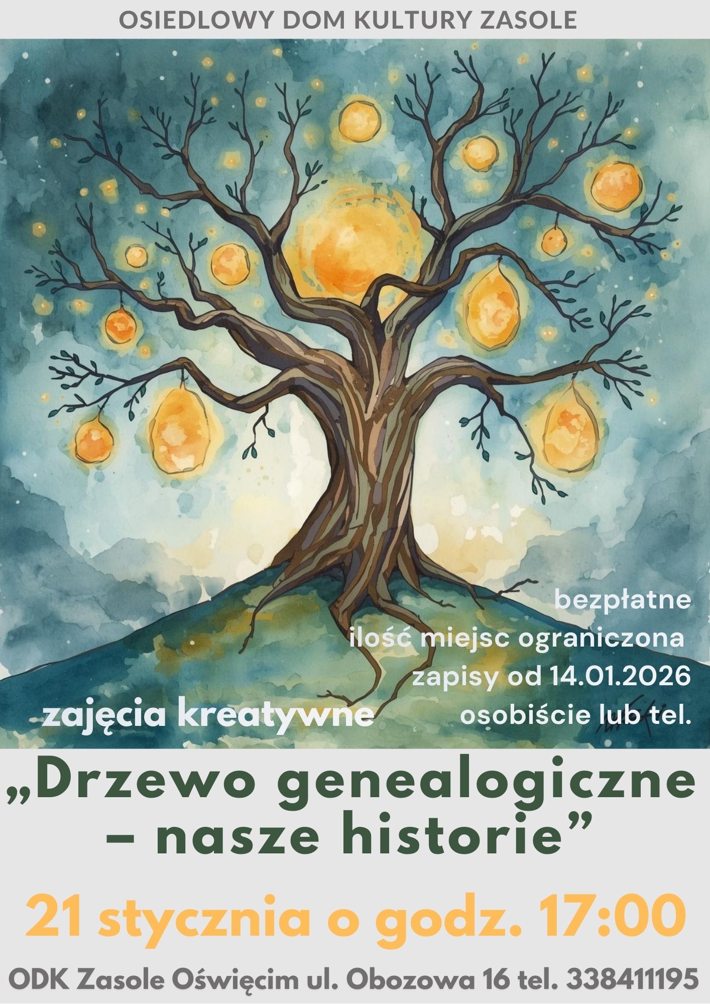 21 stycznia o godz. 17.00 br. zapraszamy do Osiedlowego Domu Kultury Zasole na zajęcia kreatywne pn. „Drzewo genealogiczne – nasze historie”, podczas których stworzymy międzypokoleniowe prace plastyczne. Zajęcia są dedykowane dzieciom w wieku 6+ wraz z babcią lub dziadkiem. Zapisy od 14 stycznia br. osobiście w recepcji ODK Zasole lub tel. 33 841 11 95. […]